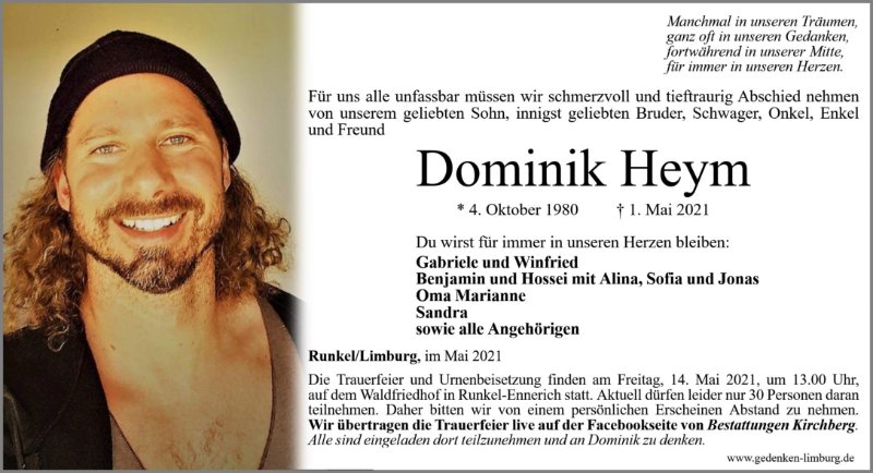 Dominik Heymgestorben am 1. Mai 2021