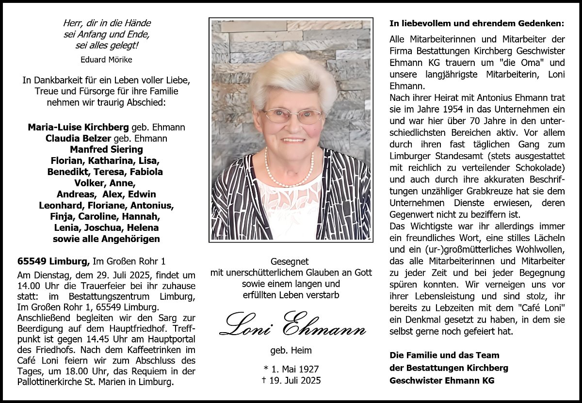 gestorben am 19. Juli 2025 in Limburg