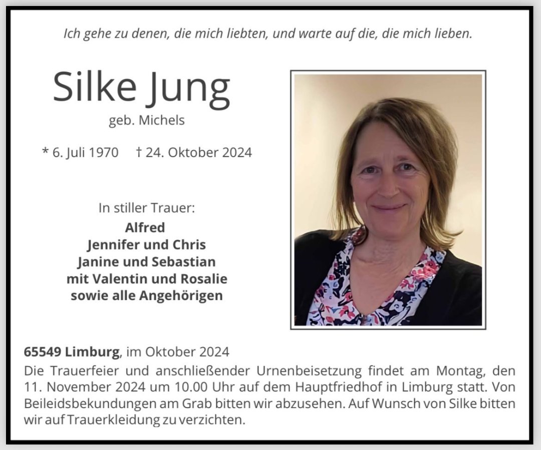 Trauerfeier mit anschließender Urnenbeisetzung, Limburg, Hauptfriedhof